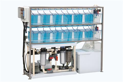 特别适合小型实验室。 同样具有完整的过滤循环系统,非常适合在狭小的空间使用,亦可摆放在桌面等平台上,是检疫、隔离及少量饲养的最佳选择。
